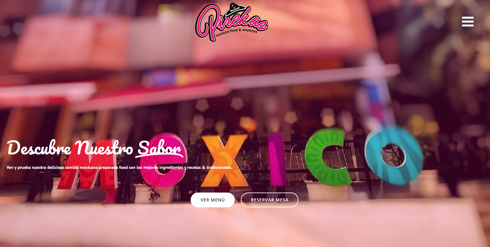 Contratar- Página informativa con secciones: Inicio, Menú digital, Ubicación/Contacto, Conóceme, enlaces a apps/redes